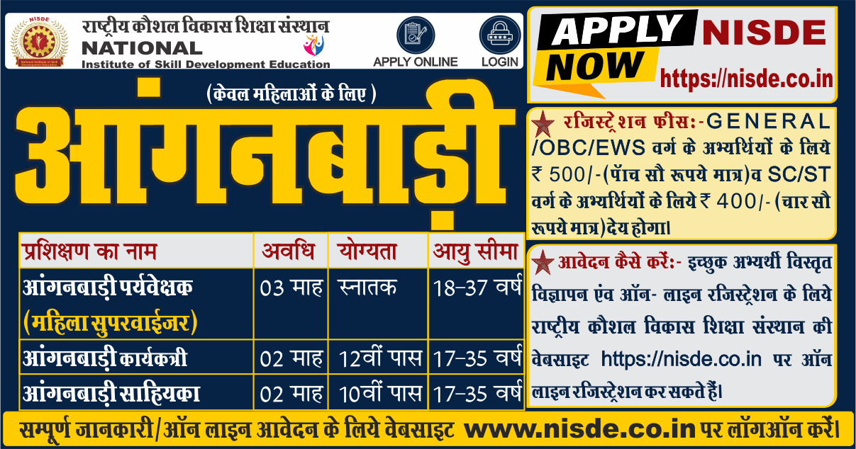 National Institute of Skill Development Education, Offered Anganwadi Programme 2025 Apply Online Form for NISDE Apply Now |